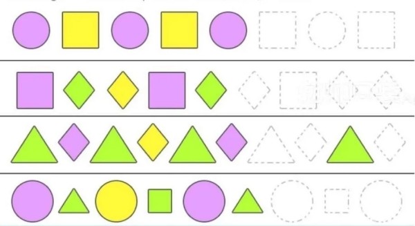3、初時(shí)的規(guī)律分隔要明顯,讓孩子清晰地見(jiàn)到,然后才逐漸縮減距離。