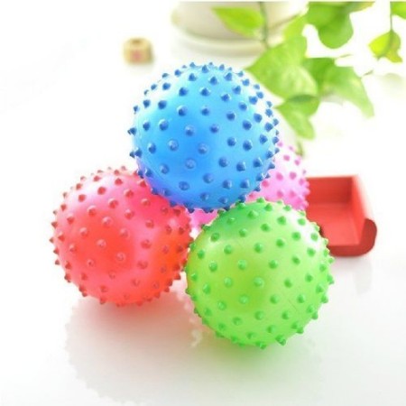 隨著孩子握持反射的消失,開始出現(xiàn)一些無(wú)意識(shí)的抓握,標(biāo)志手部運(yùn)動(dòng)的開始。觸覺是感覺中發(fā)育最早的,可以使用刺球提供給孩子大量的手部觸覺刺激,增加對(duì)手的注意。